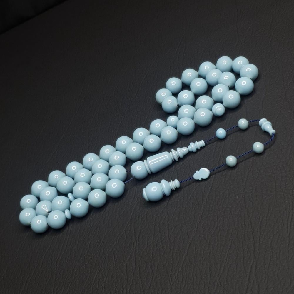 سبحة فاتوران خفيف الوزن مناسب للاستخدام اليومي بلون سماوي مما يضفي على المسبحة جمالا مييز. التقطيع مدور بوز متناسق مسباح ناعم باليد و يزينه تمليكه انيقة .