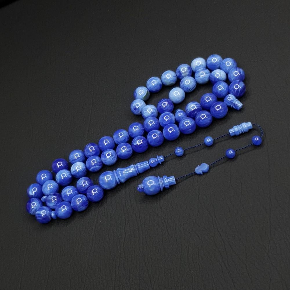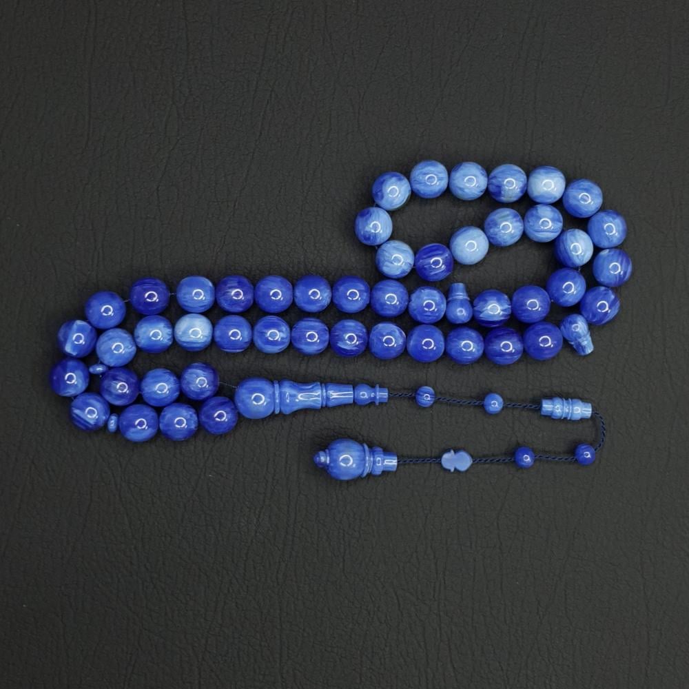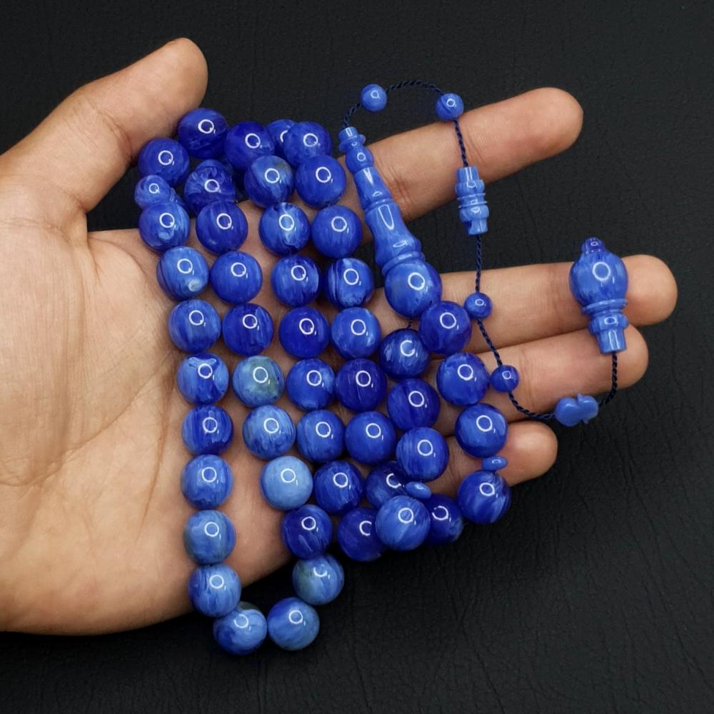 سبحة فاتوران خفيف الوزن مناسب للاستخدام اليومي بلون ازرق مما يضفي على المسبحة جمالا مييز. التقطيع الدائري متناسق مسباح ناعم باليد و يزينه تمليكه انيقة .