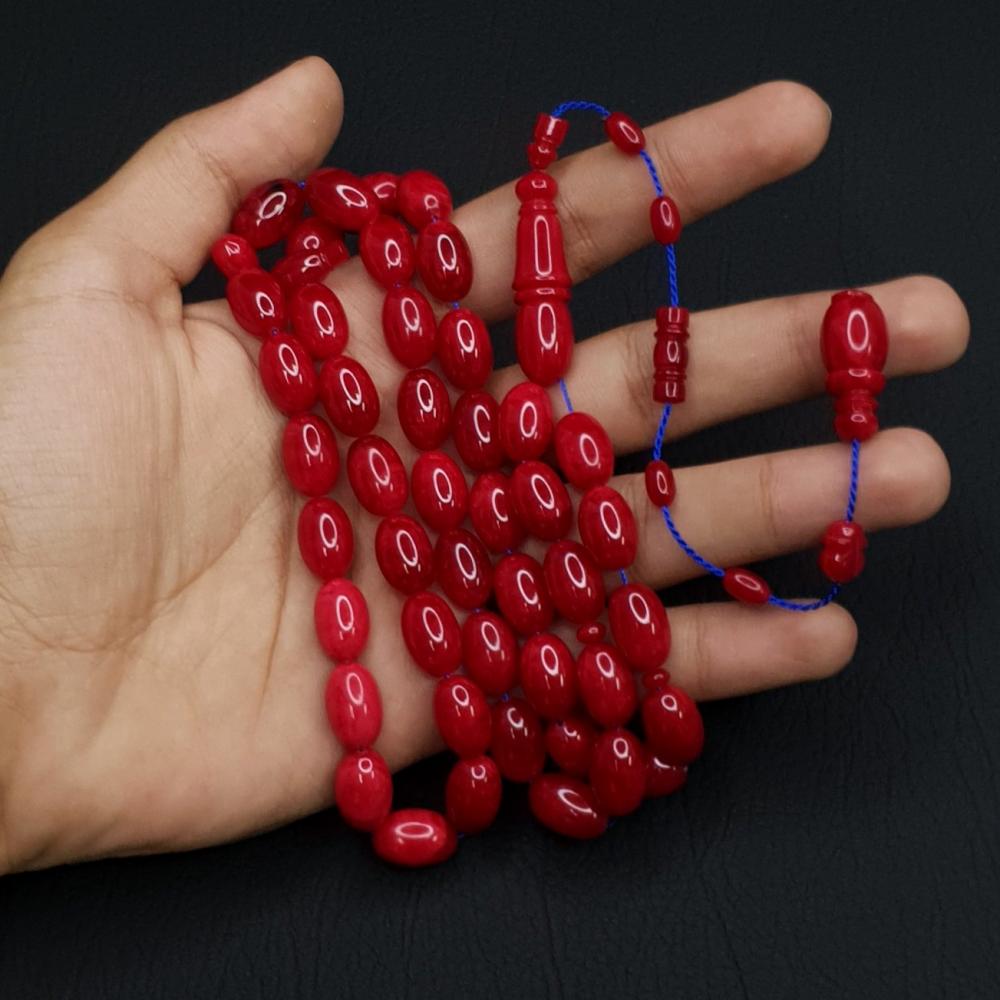 سبحة فاتوران خفيف الوزن مناسب للاستخدام اليومي بلون احمر كرزي مما يضفي على المسبحة جمالا مييز. التقطيع الدائري متناسق مسباح ناعم باليد و يزينه تمليكه انيقة .