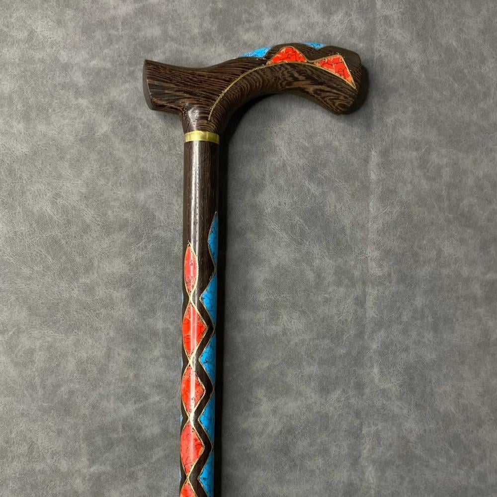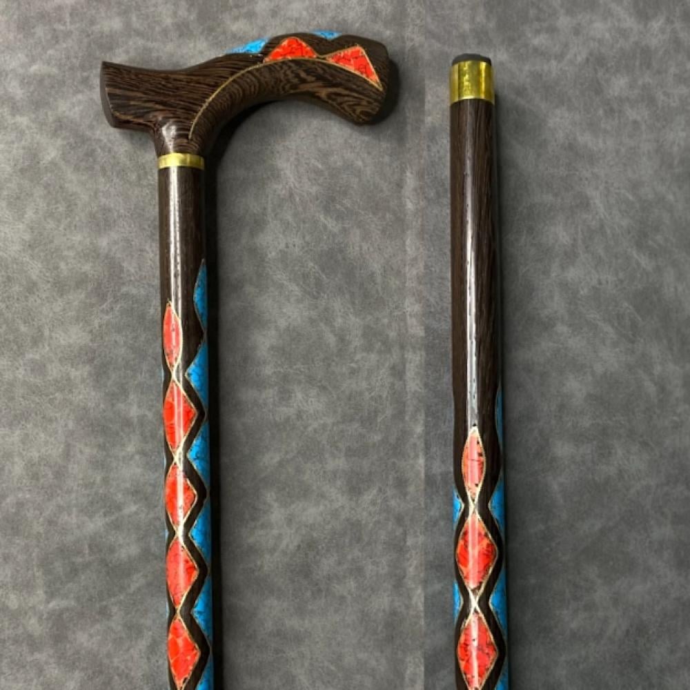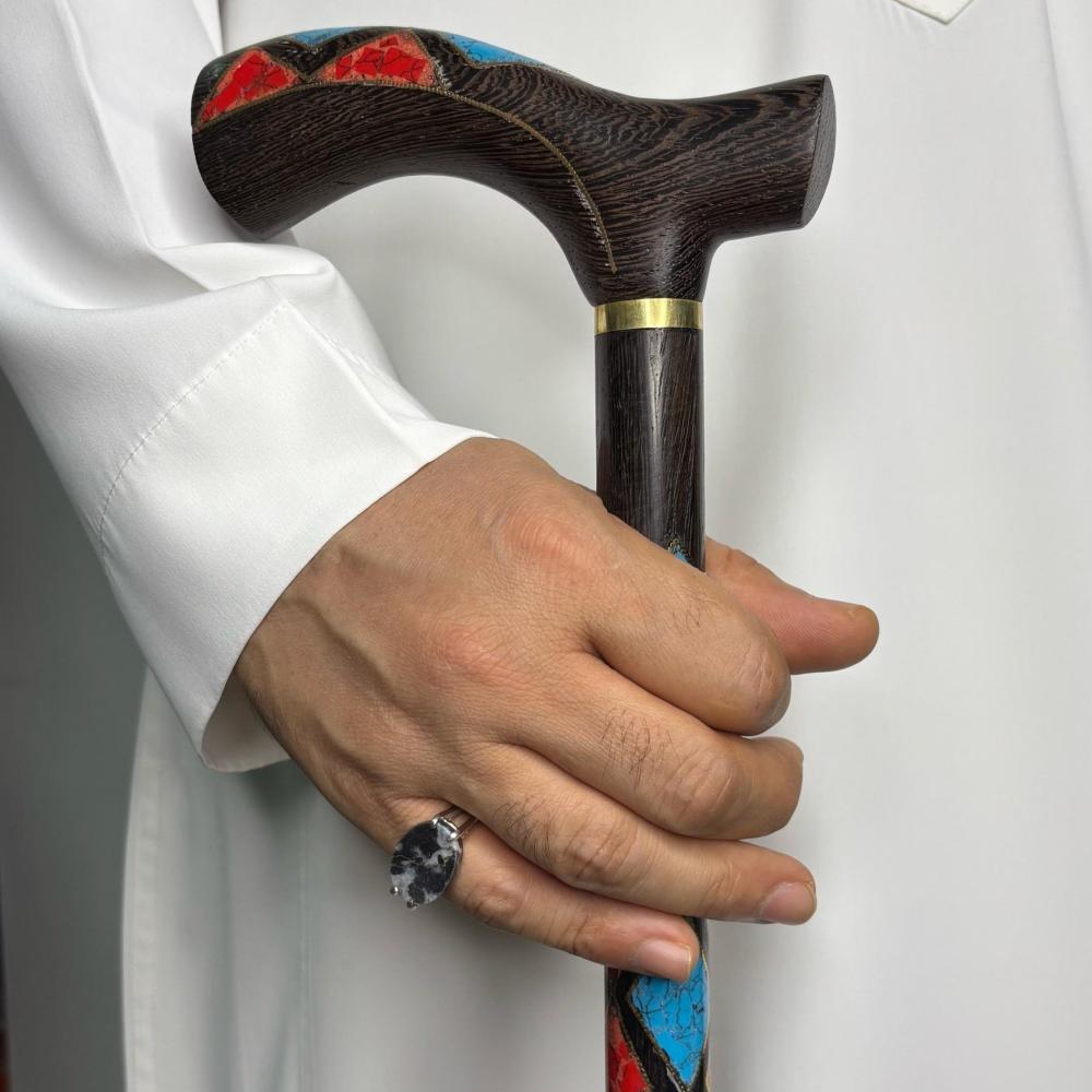 عكاز فاخر مصنوع يدويًا من خشب بنجي طبيعي، مميز بنقوش من المرجان، و الفيروز، و الكهرمان، مما يمنحه لمسة جمالية راقية وملمسًا ناعمًا. برفقة مقبض مريح لليد، من تصميم أمهر الحرفيين المتخصصين في صناعة العكازات من الأخشاب الطبيعية. صُقل باحترافية بطبقة سميكة، ومطعّم بالنحاس، مع قاعدة ربل مانعة للانزلاق. صمم احترافيًا و عمليًا ، ليكون مناسبًا للشباب وكبار السن ولكل الأذواق.